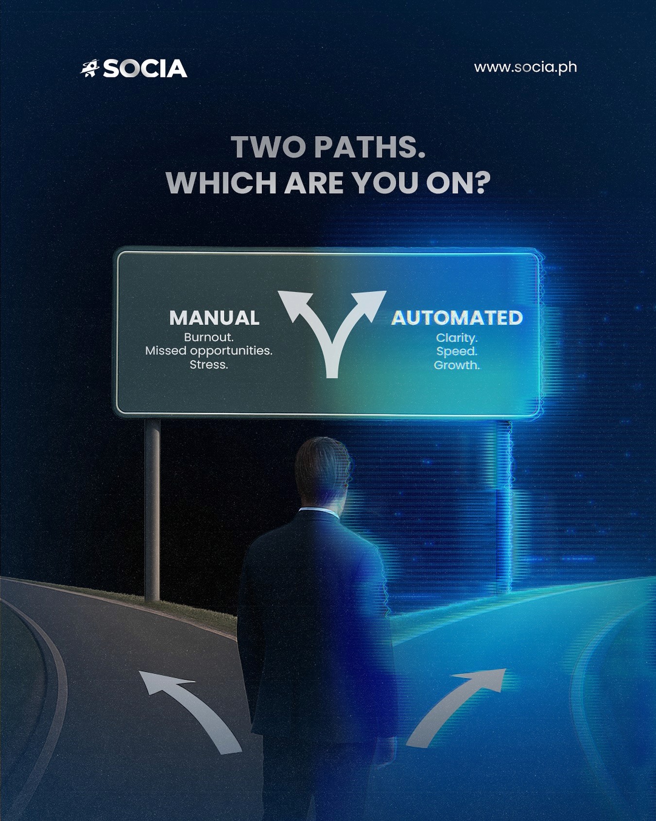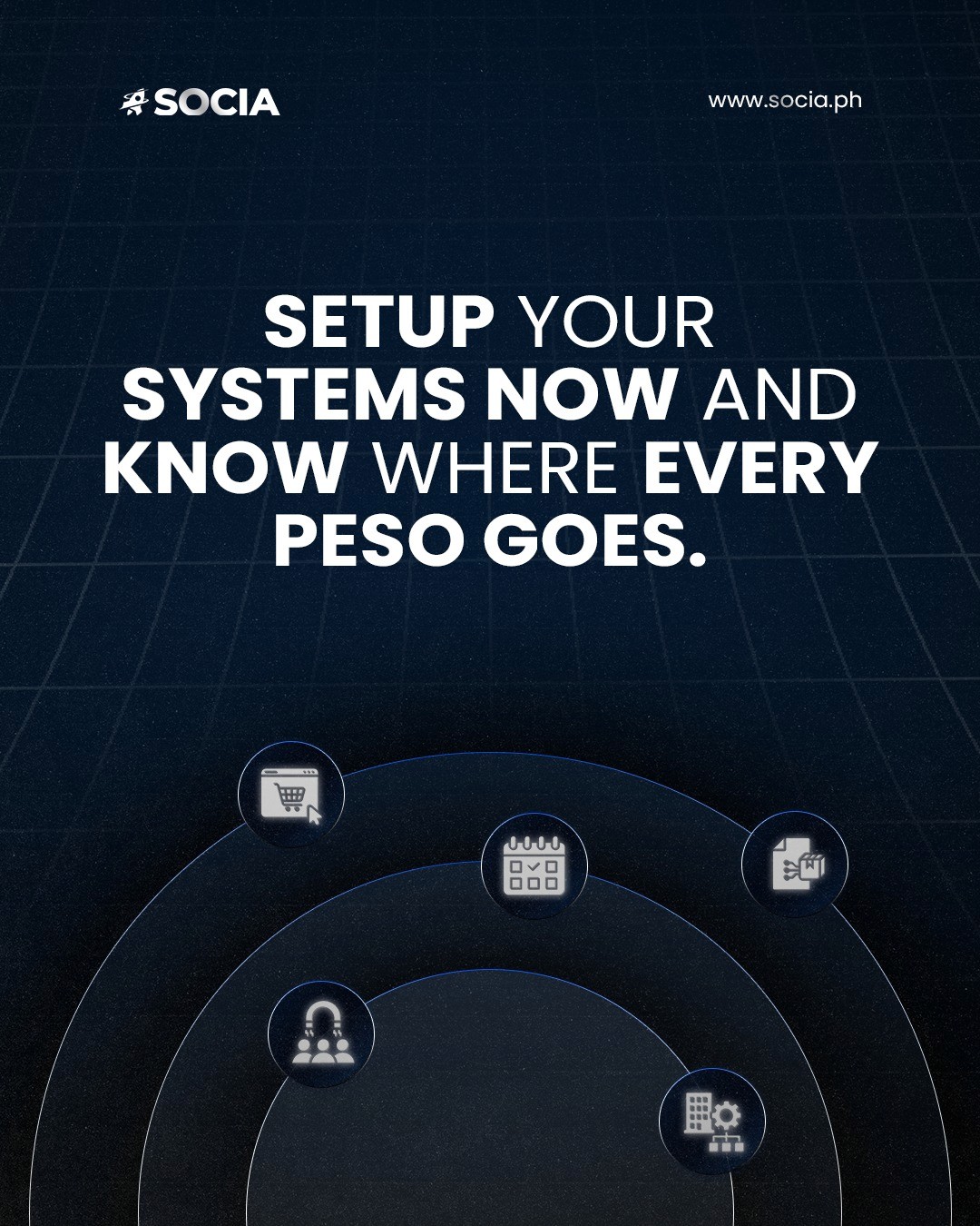 The direction centered on clean, modular compositions that reflect Socia’s “built by operators” mindset. Through bold typography, minimal layouts, and calculated spacing, each post communicates precision and movement, embodying the brand’s rhythm of growth and transformation.